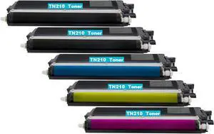 InkSpire 5PK TN210 TN-210 Toner Cartridge for Brother MFC-9125CN MFC-9325CW HL-3045CN HL-3040CN MFC-9320CW HL-3070CW MFC-9010CN HL-3075CW TN210BK TN210Y TN210M TN210C