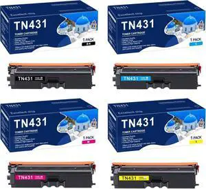 TN-431BK TN-431C TN-431M TN-431Y High Yield Toner Cartridge Replacement for Brother TN431 TN 431 HL-L8260CDW L8360CDW L9310CDWTT MFC-L8610CDW L8900CDW L9570CDWT L9570CDW Printer 4 Pack TN431BK/C/M/Y