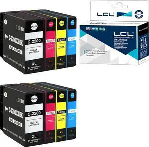 LCL Compatible for Canon PGI-2200 PGI-2200XL PGI-2200XLBK PGI-2200XLC (8-Pack 2Black 2Cyan 2Magenta 2Yellow) Pigment Ink Cartridge for Canon Maxify MB5020 Ib4120 MB5320 MB5420 MB5120 iB4020 Printer