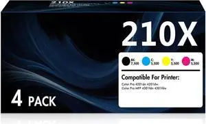 210X Toner Cartridge 4 Pack Color Laserjet Pro MFP 4301dw Compatible Replacement for HP 210X 210A W2100X High Yield Toner Set for Color Laser Jet Pro MFP 4301fdn 4301fdw 4201dn 4201dw 4301 4201