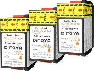 793-5 SL-798-0 Ink Cartridge Replacement for Compatible Pitney Bowes DM100, DM125i, DM200, DM175i, DM225, SendPro C 200, 300, 400, 425 and SendPro+ Series Fluorescent Red Postage meter Ink (3 Pack)