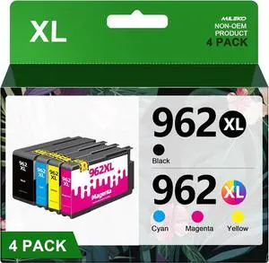 962XL Ink Cartridges Combo Pack Replacement (4-Pack, B/C/M/Y) MILEKO- Compatible 962XL 962 Ink Cartridges for HP OfficeJet Pro 9010 9012 9015 9018 9020 9025 9014 9016 MI8600 Inkjet Expression Printer