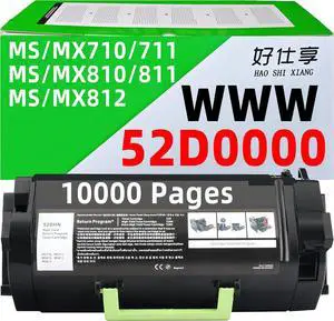 52D1H00 62D1H00 521H 621H Black Toner Cartridge Compatible with Lexmark MS710 MS711 MS810 MS811 MS812 MX710 MX711 MX810 MX811 MX812 Printer (52D0000-10000Pages)