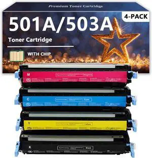 501A Toner Cartridges Compatible for HP 501A Q6470A 503A Q7581A Q7582A Q7583A Toner Cartridge, Quality Toner for HP Color 3505 3600 3800 Series, 1 Set