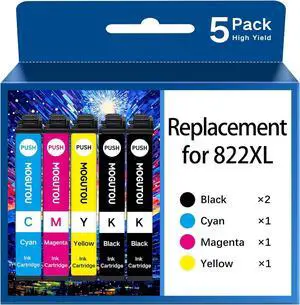 822XL Remanufactured for Epson 822 XL Ink Cartridges Combo Pack for Epson 822 T822XL for Epson Workforce Pro WF-3820 WF-3823 WF-4820 WF-4830 WF-4833 WF-4834 Printer (2 Black 1 Cyan 1 Magenta 1 Yellow)