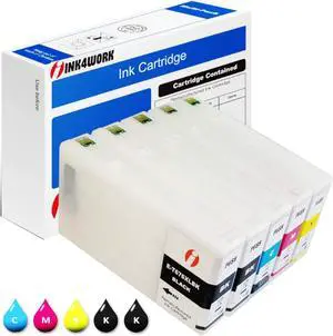 INK4WORK 5-Pack Remanufactured Ink Cartridge Replacement for Epson 676XL T676XL 676 XL for use with Workforce Pro WP-4010 WP-4020 WP-4023 WP-4090 WP-4520 WP-4590 (Black x2, Cyan, Magenta, Yellow)