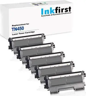 5 High Yield Inkfirst® Toner Cartridges TN-450 (TN450) Compatible Remanufactured for Brother TN-450 Black DCP-7060D DCP-7065DN MFC-7360N MFC-7460DN MFC-7860DW HL-2220 HL-2230 HL-2240 HL-2240D HL2270D