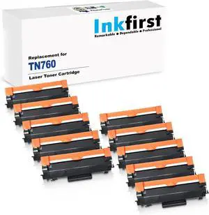 (CHIP INCLUDED) 10 High Yield Inkfirst Toner Cartridges TN-760 TN760 Compatible Remanufactured for Brother TN-760 Black MFC-L2710DW MFC-L2730DW MFC-L2750DW MFC-L2750DWXL DCP-L2550DW HL-L2350DW HLL2370