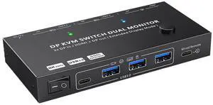 2 Port Dual Monitor 4K HDMI KVM Switch, 2x2 HDMI USB 3.0 KVM Switch 2 in 2 out 4K @60Hz HDMI 2.0 Switcher for 2 PC Share Monitor Mouse Keyboard (with USB 3.0 port)“ KVM switch works very well. ”