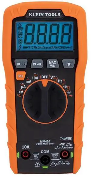 Klein Tools MM420 Digital Multimeter, Auto-Ranging TRMS Multimeter, 600V AC/DC Voltage, 10A AC/DC Current, 50 MOhms Resistance