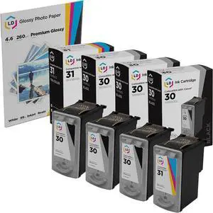 LD Remanufactured Ink Cartridge Replacement for Canon PG30 & CL31 (3 Pigment Black, 1 Color, 4-Pack)