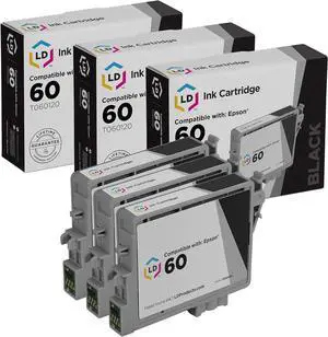 LD Remanufactured Replacements for Epson T060120 Set of 3 Black Pigment Based Inkjet Cartridges