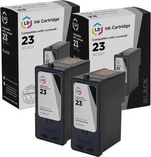 LD Remanufactured Ink Cartridge Replacement for Lexmark #23 18C1523 (Black, 2-Pack)