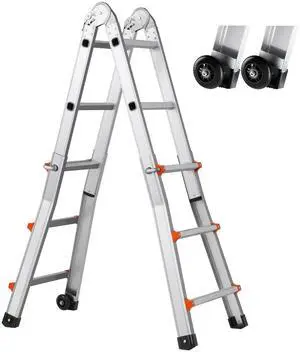 Multi-Purpose Folding Ladder 7-in-1 4 Step 15.5ft with Scaffolding Plank