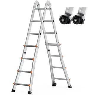 Multi-Purpose Folding Ladder 7-in-1 4 Step 15.5ft with Scaffolding Plank