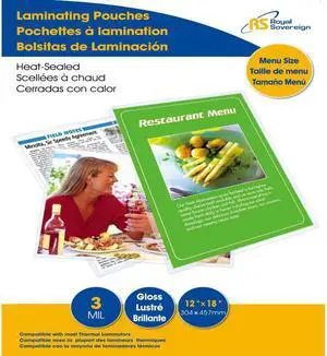 Royal Sovereign RF03MENU0100 12" x 18" Menu Size Thermal Laminating Pouches, 3mil - 100 Pack