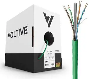 Voltive Cat6 Riser (CMR), 1000ft, Green - Solid Bare Copper Bulk Ethernet Cable - UTP - 600MHz - UL Certified & ETL Verified