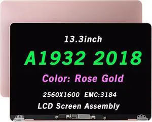 Replacement 13.3 inches 2560x1600 Full LCD Screen Display Complete Top Assembly Compatible with MacBook Air Retina 13" A1932 Late 2018 EMC 3184 MUQT2 MUQU2 MUQV2 (A1932 2018 Rose Gold)