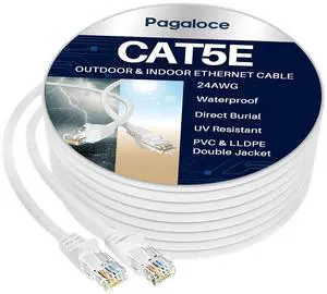 AiCat Cat6 Direct Earth Cable, 24AWG Solid Bare Copper 350MHz UL Listed Unshielded Twisted Pair UTP Riser CMX Rated Waterproof UV Resistant Cat 6 Outdoor Ethernet Cable