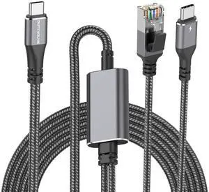 USB C to Ethernet Cable with Charging 6.6 Feet, USB-C Male 100W PD & Gigabit LAN Two in One, Type C to RJ45 Nylon Cord with Power Delivery (PD Next to RJ45 Port), for MacBook, iPad, Windows