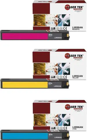 Laser Tek Services Compatible Ink Cartridge Replacement for HP 972A Works with HP PageWide Pro 352dw 377dw 452dn 477dn 477dw 552dw 577z Printers (Cyan, Magenta, Yellow, 3 Pack)
