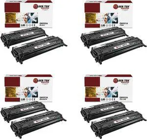 Laser Tek Services Compatible Toner Cartridge Replacement for HP 124A Q6000A Q6001A Q6002A Q6003A Works with HP Color Laserjet 1600 2600n, CM1015mfp Printers (Black, Cyan, Magenta, Yellow, 8 Pack)