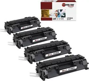 Laser Tek Services Compatible High Yield Toner Cartridge Replacement for HP 80X CF280X Works with HP Laserjet Pro 400 M401dn M401dw M401n Printers (Black, 4 Pack) - 6,900 Pages
