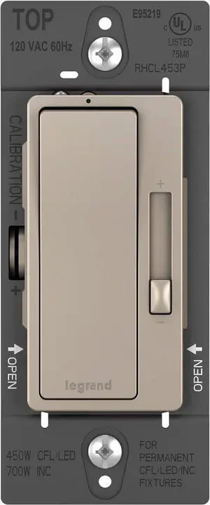 Legrand Radiant Dimmer Light Switch with Wall Plate, for Dimmable LED Lights, 450W LED and CFL Bulbs - 700W Incandescent & Halogen, White, RHCL453PWPW