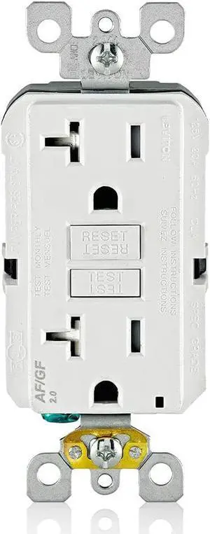 Leviton AFCI/GFCI Dual-Function Receptacle, 20 Amp Tamper-Resistant with LED Indicator Light, Self Test, AGTR2-00W, White