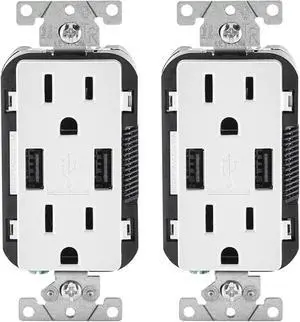 Leviton 2-Pack Decora USB Dual Type A Receptacles 3.6 Amp, 15 Amp Tamper-Resistant, T5632-3PK, White
