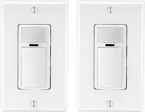 Leviton 2-Pack Decora Occupancy Motion Sensor Light Switch, Auto-On, 2A, Residential Grade, Single Pole, DOS02-2PK, White