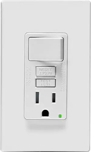 Leviton GFCI Combination Switch, 15 Amp Tamper-Resistant Receptacle with LED Indicator, Smartlock Pro Slim, GFSW1-STW, White