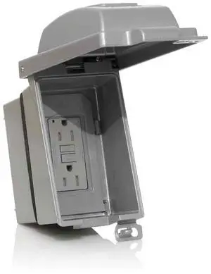 Leviton Vertical Weatherproof While-in-Use Cover GFCI Receptacle and Box Kit, IUM1V-KBG, Grey