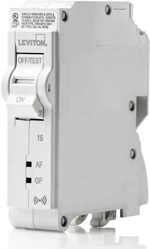 Leviton 1-Pole Plug-on Smart AFCI/GFCI Branch Circuit Breaker, 15 Amp, 120 VAC, LB115-DS, White