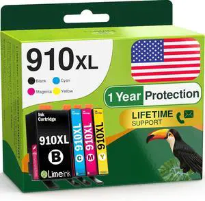 Limeink Remanufactured Ink Cartridges Replacement for HP 910 Ink Cartridges for HP Printers for HP 910xl Ink Cartridges Combo Pack 910 XL Ink Cartridges for HP Officejet Pro 8025 Black Color 4p