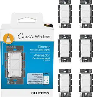 Lutron Caseta Original Smart Dimmer Switch (Lutron Smart Hub Required), for LED Lights, 150 Watt, Single-Pole/3-Way, No Neutral Required, PD-6WCL-WH, White, 6 Pack