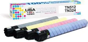 MADE IN USA TONER Compatible Replacement for use in Konica Minolta bizhub C258, c308, c368, c454, c554, C454e, C554e Universal (TN-324K/C/M/Y, TN-512C/M/Y/K) (Black,Cyan,Yellow,Magenta, 4-Pack)