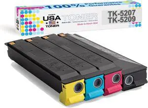 MADE IN USA TONER Compatible Replacement for Kyocera TK-5207, TK-5209, TASKalfa 356ci, 358ci, Copystar CS 356ci, CS 358ci (Cyan, Magenta, Yellow, Black, 4 pk)