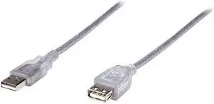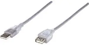 MANHATTAN 340502 Translucent Silver Hi-Speed USB Extension Cable- Type: USB 2.0