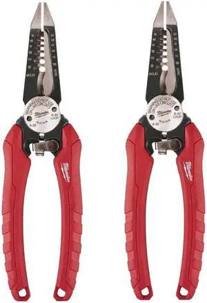Milwaukee 48-22-3079 6-in-One Combination Wire Stripping and Reaming Pliers for Electricians, 2 Pack