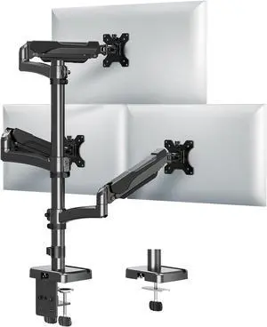 MOUNTUP Triple Monitor Stand Mount - 3 Monitor Desk Mount for Computer Screens Up to 27 inch, Triple Monitor Arm with Gas Spring, Heavy Duty Monitor Stand, Each Arm Holds Up to 17.6 lbs, MU0006-CA