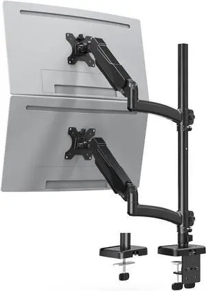 MOUNTUP Vertical Dual Monitor Mount Holds 4.4-17.6lbs, up to 32 Inch Stacked Monitor Mount with Gas Spring Arm with Clamp/Grommet Base Dual Monitor Stand for Desk, VESA 75x75/100x100 MU6012A