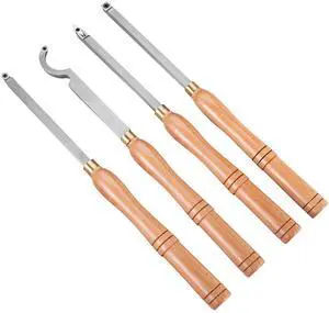 Wood Turning Tools for Lathe 4 PCS Set, Carbide Lathe Tools with Diamond Shape, Round, Square Cutters, Turning Lathe Chisels with Comfortable Grip Handles Lathe Tools for Craft DIY Hobbyists
