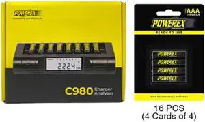 Powerex C980 Smart Charger & 16 AAA NiMH Powerex PRO Rechargeable Batteries (1000 mAh)