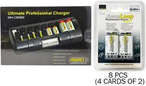 Powerex MH-C801D 8-Cell Charger & 8 AAA AccuPower AccuLoop-X NiMH Batteries (1100 mAh)