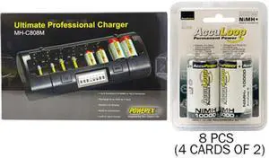 8 Bay LCD Charger + 8 D NiMH AccuPower AccuLoop Batteries (10000 mAh)