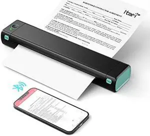 Portable Thermal Printer Wireless Travel - Bluetooth Printer for Phone, Small Mobile Printer for Laptop, Compact Inkless Printer for Vehicle Home Use School Office, Support 8.5" X 11" Letter Paper