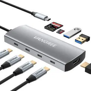 USB C Adapter for Laptop Type C Dongle with 4K Port Card Reader Slot Data Port 100W Charging 2xUSB3.0 Port