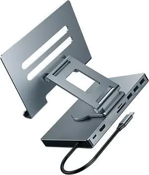 Foldable USB C Adapter Stand with PD100W Charging 1000Mbps Ethernet Height Heat Dissipation Aluminum Alloy Portable USB C Dock with Cooling