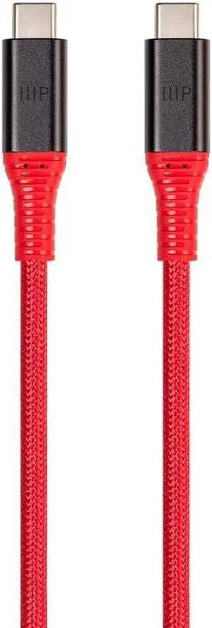 Monoprice Durable USB 3.2 Gen 2 Type-C Data and Power Kevlar Reinforced Nylon-Braid Cable - 1 Meter - Red | 5A/100W - AtlasFlex Series